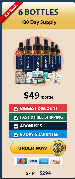 Some customers have seen results immediately, while for most it will take 3-6 months to get the best results. Each case is different – and a number of factors can influence the amount of time it’ll take to see improvement. We strongly recommend taking Breathe® for at least 3-6 months for your best chance at success. Therefore, we highly recommend the 6 bottle and 3 bottle option of Breathe for best results. We also understand that despite the great success rate with our formula, it won’t work for everyone. Which is why we offer a 90-Day guarantee on your most recent order. If Breathe® doesn’t work for you, we give you 90-days to request a refund (minus s&h) on your most recent order.. Every 3 bottle package of Breathe comes with the 4 bonus ebooks absolutely free. Or make the smart decision and get the heavily discounted 6 bottle package, which comes with the 4 bonus ebooks absolutely free along with free shipping as well.